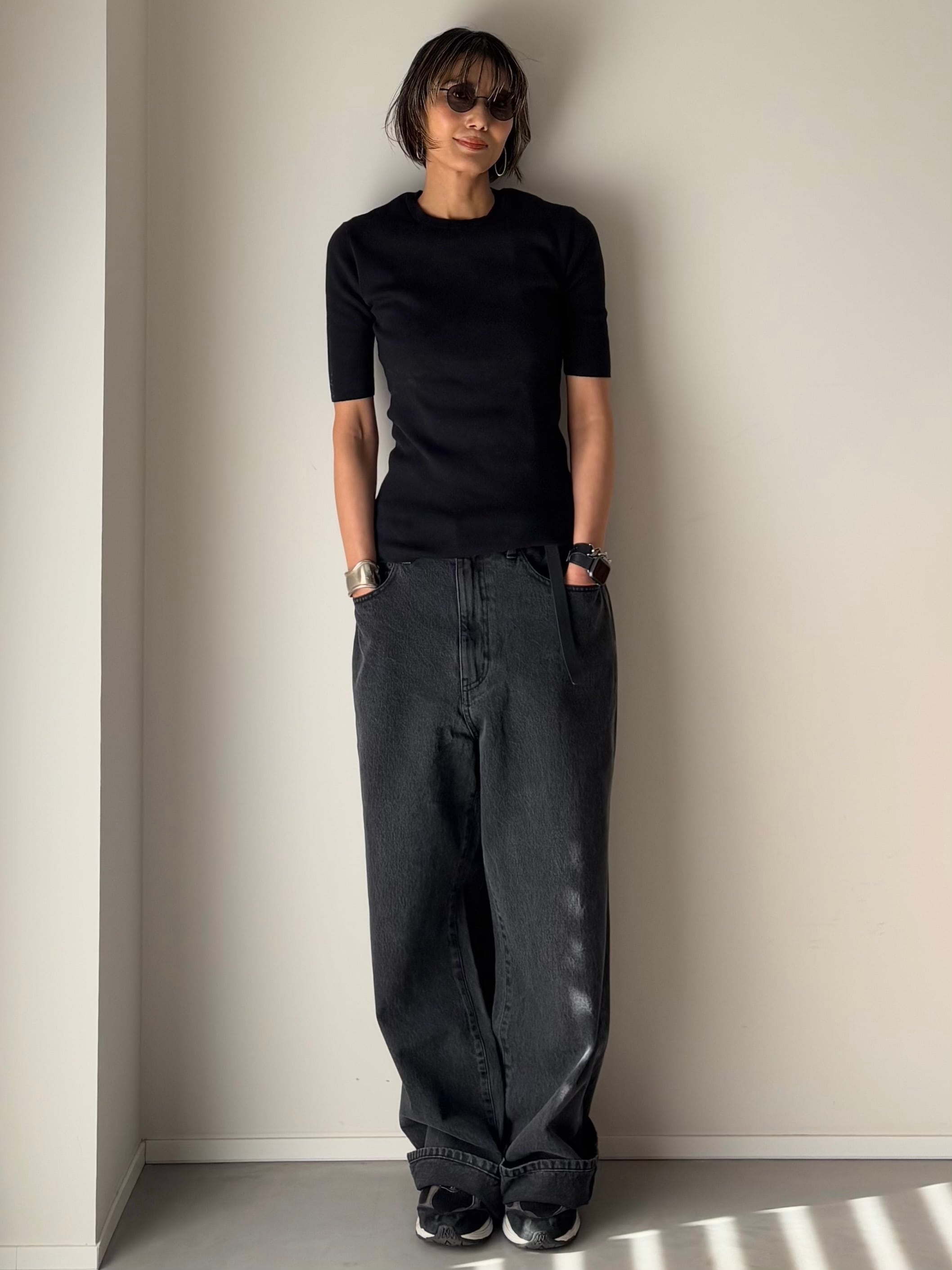 このちょっとした工夫で、腰のラインが引き締まり、ゆるさの中にも「大人の余裕」を感じさせます。