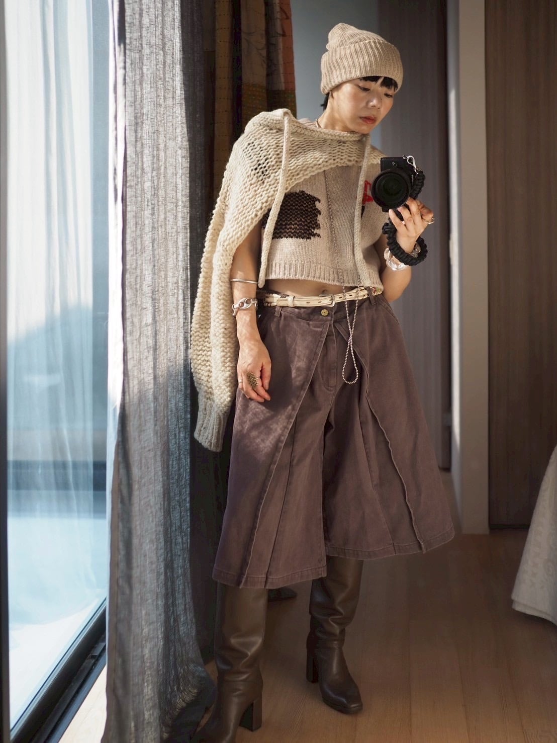 ブーツを合わせれば存在感のあるモードな印象に、フラットシューズやスニーカーなら、頑張りすぎない大人のデイリースタイルが完成。季節の変わり目にも取り入れやすく、トップス次第で雰囲気が大きく変わるため、ワードローブの幅を広げてくれるアイテムです。