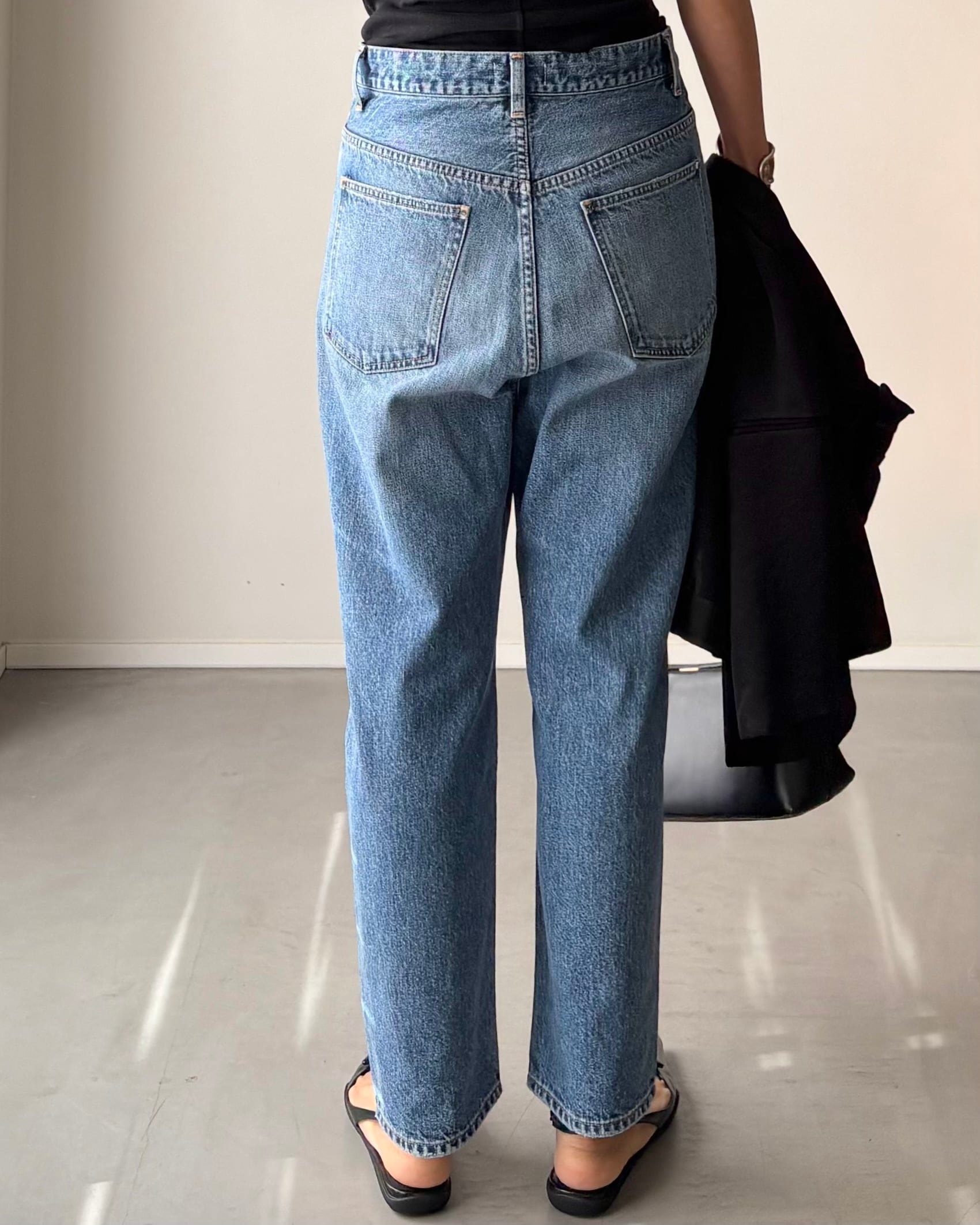 コットン100%のデニム生地は、程よい厚みがありながら硬すぎず、穿くほどに身体に馴染む素材感。