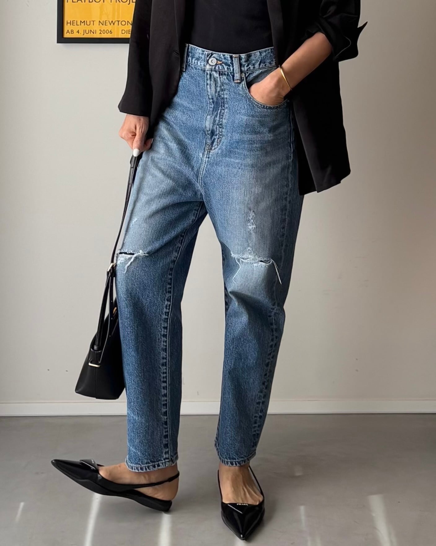 ハードになりすぎず、ジャケットやきれいめトップスとも自然に馴染む、ヘルシーで女性らしいダメージ感に仕上げています。