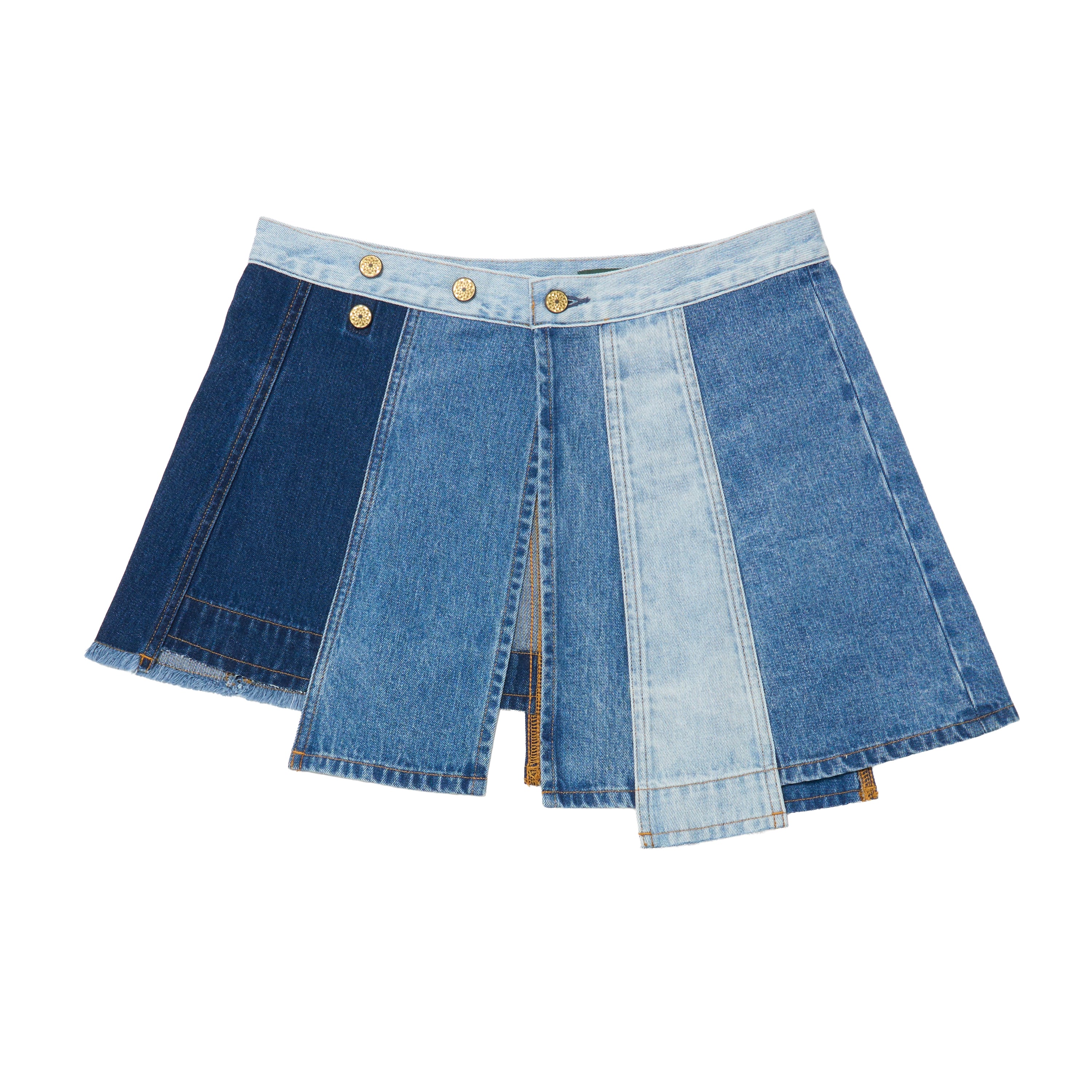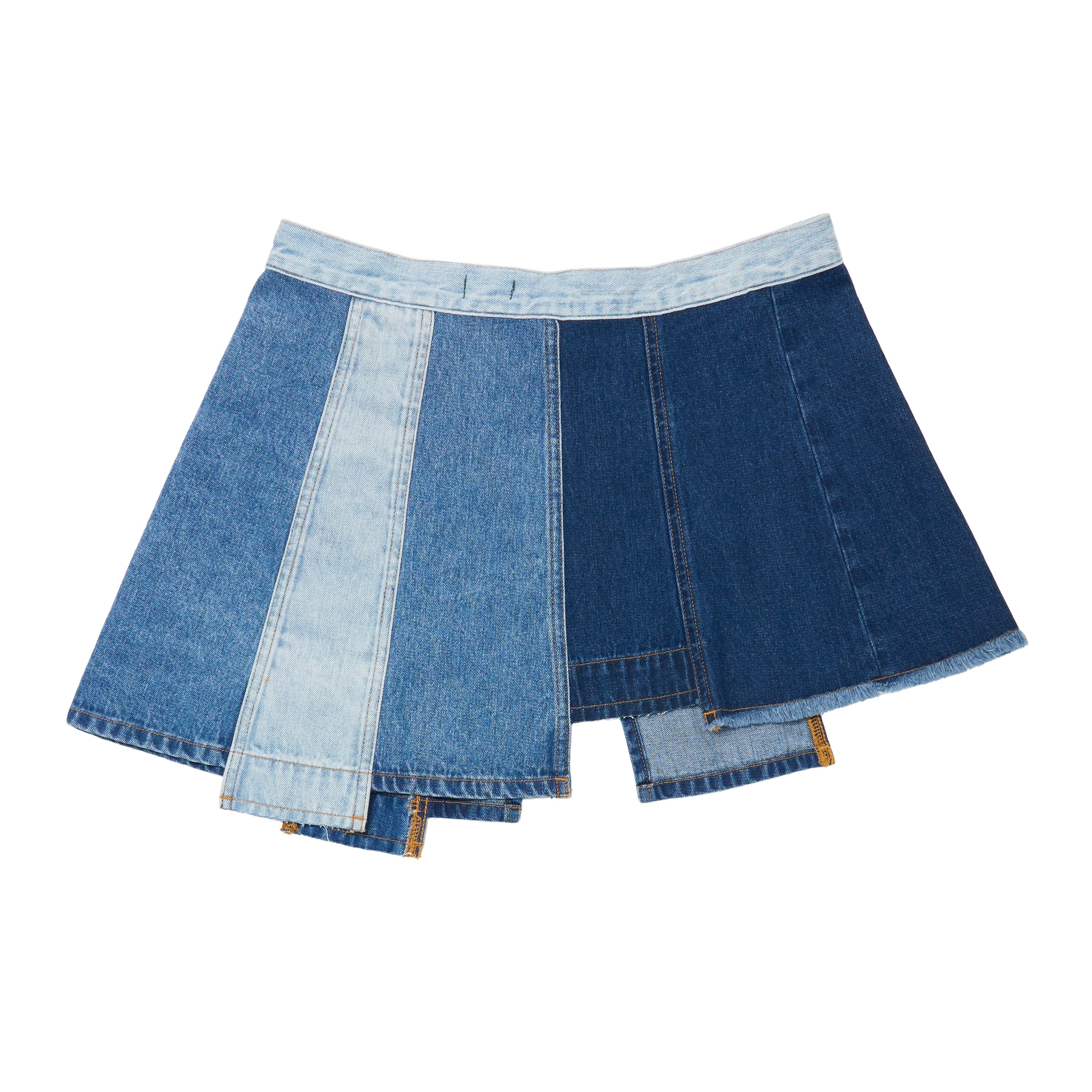 穿き込まれたデニムを解体し、再び仕立て直したようなリメイク風デニムスカート。