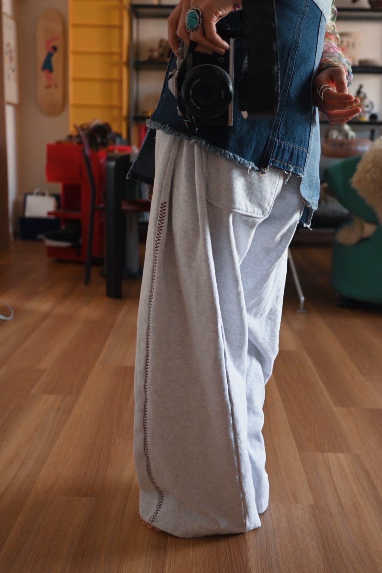 デニムベルトを巻き付けたようなディテールとヴィンテージライクなボタンがアクセントになり、トップスをインしたときにより雰囲気が引き立ちます。少しラフに、無造作に着こなすのがおすすめ。